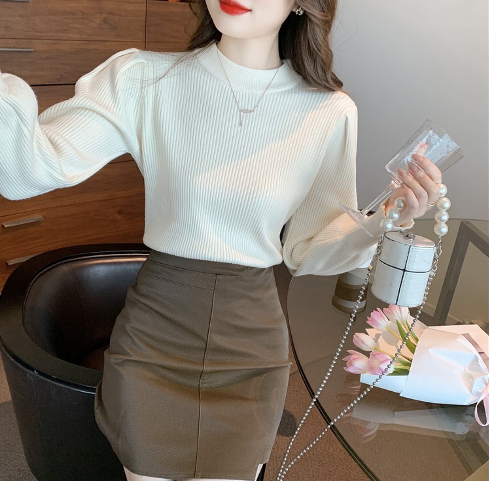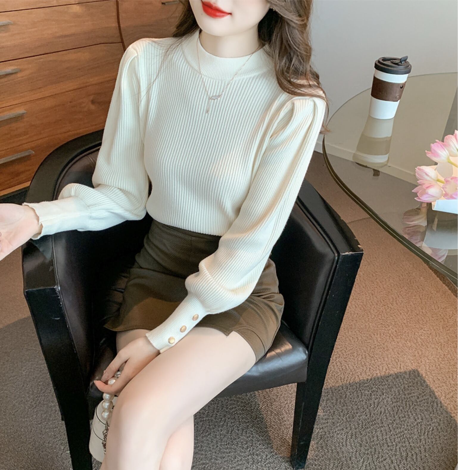 ★大人気★ 袖ボタン パフ スリーブ ボトリング シャツ ニット