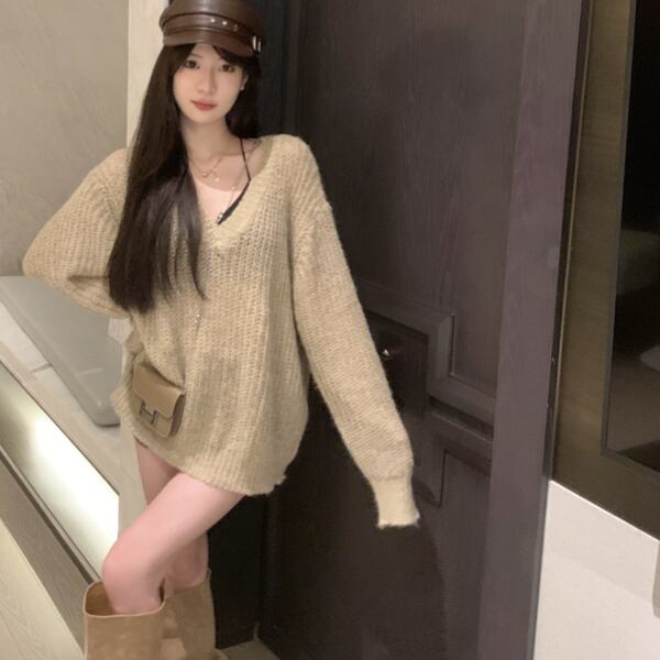 ★大人気★ 韓国風 ソフト ワックス ニット セーター Vネック