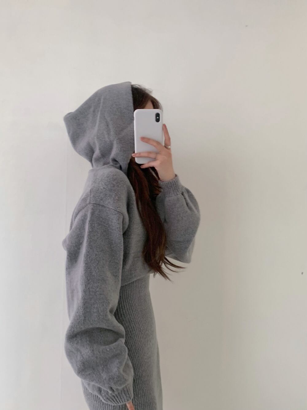 ★大人気★バッグヒップ ミドル丈 フード付き ニット ワンピース