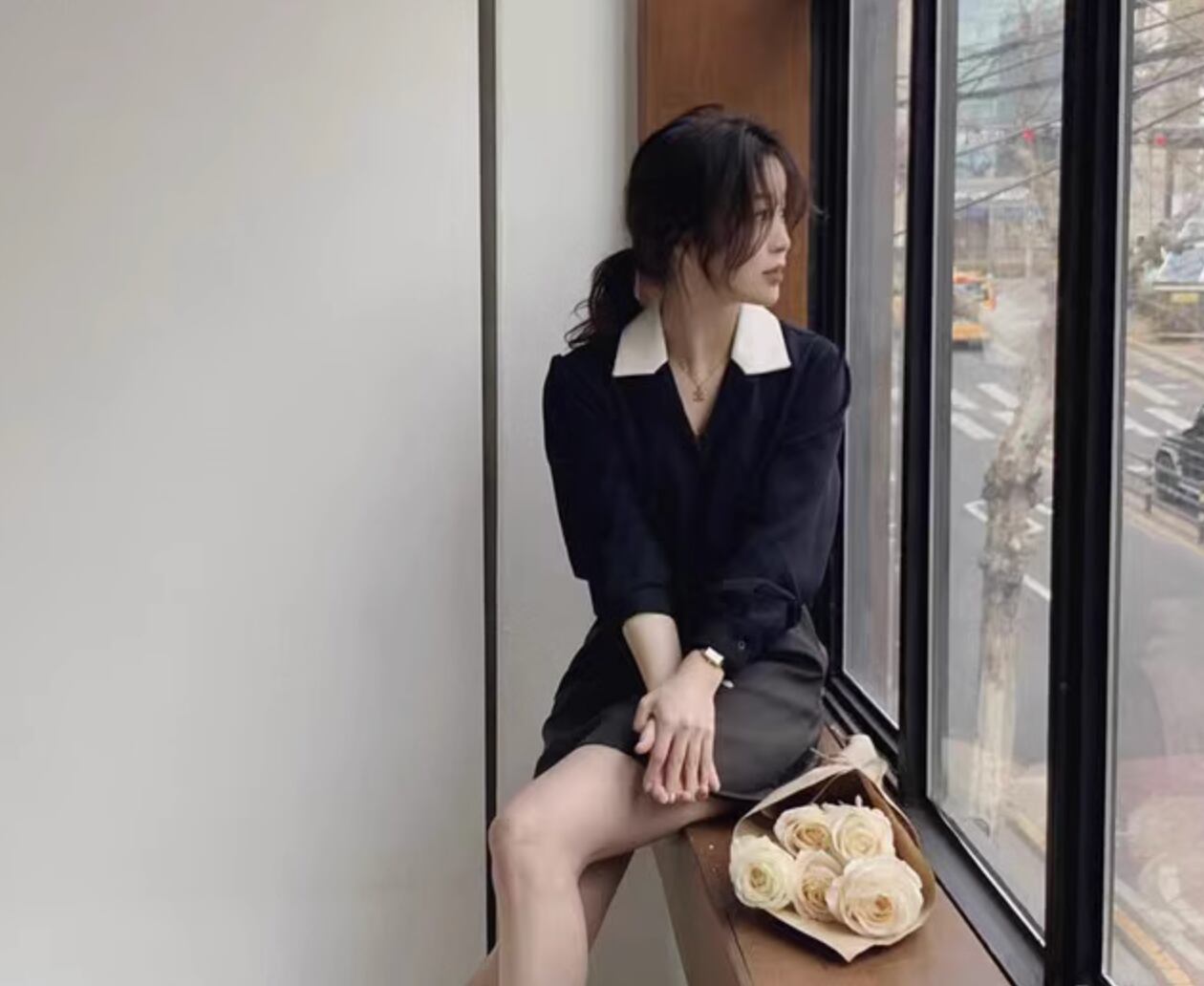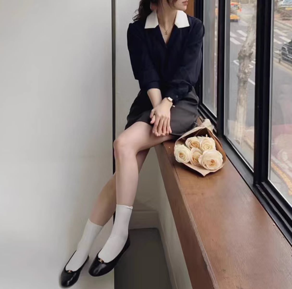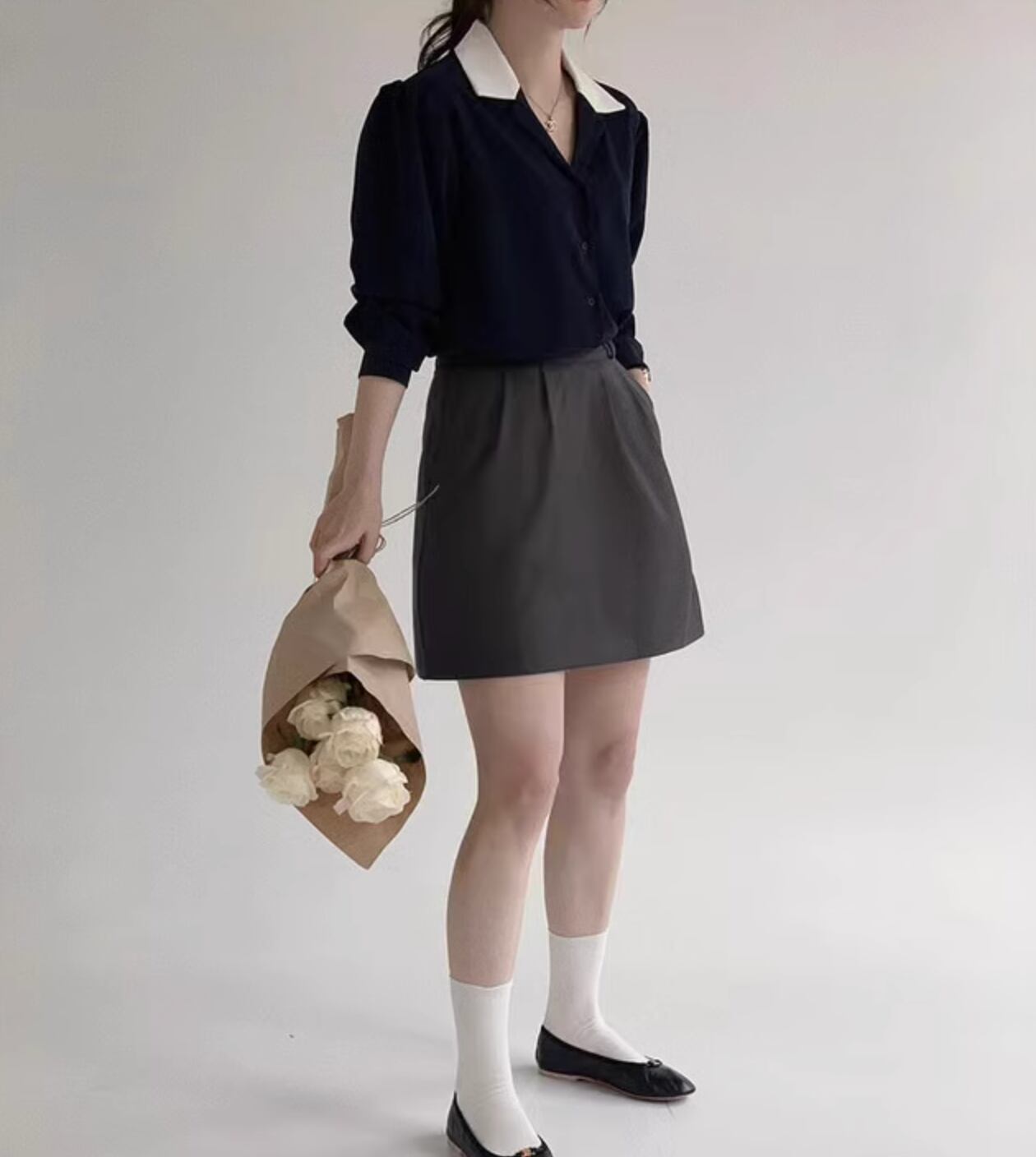 商品名:韓国シック スーツ襟 シフォンシャツ トップ