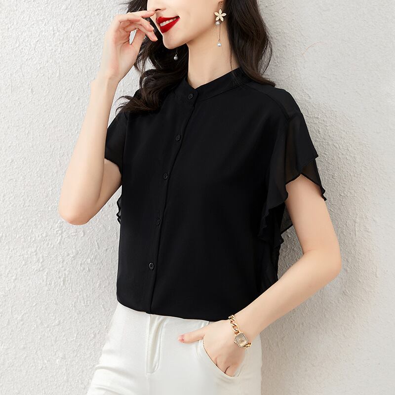 ★大人気★ 韓国風 ラウンドネックフリルスリー ブブラウス